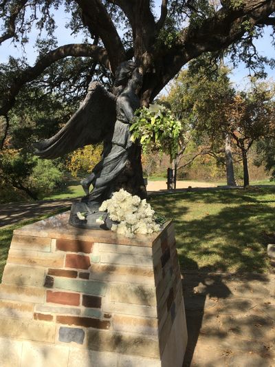 The Christmas Box Angel Statue was introduced to the world in the book The Christmas Box, a worldwide bestseller and hit television movie by author Richard Paul Evans. In the book, a woman mourns the loss of her child at the base of an angel monument. Though the story is mostly fiction, the angel monument once existed but is speculated to have been destroyed. The new angel statue was commissioned by Richard Paul Evans, in response to reports that grieving parents were seeking out the angel as a place to grieve and heal. The monument was dedicated on December 6, 1994-corresponding with the date of the child's death in The Christmas Box (Coincidentally, Dec. 6th is celebrated in many parts of the world as Children's Day). Annual candlelight vigils occur at 7:00 p.m. on December 6th.